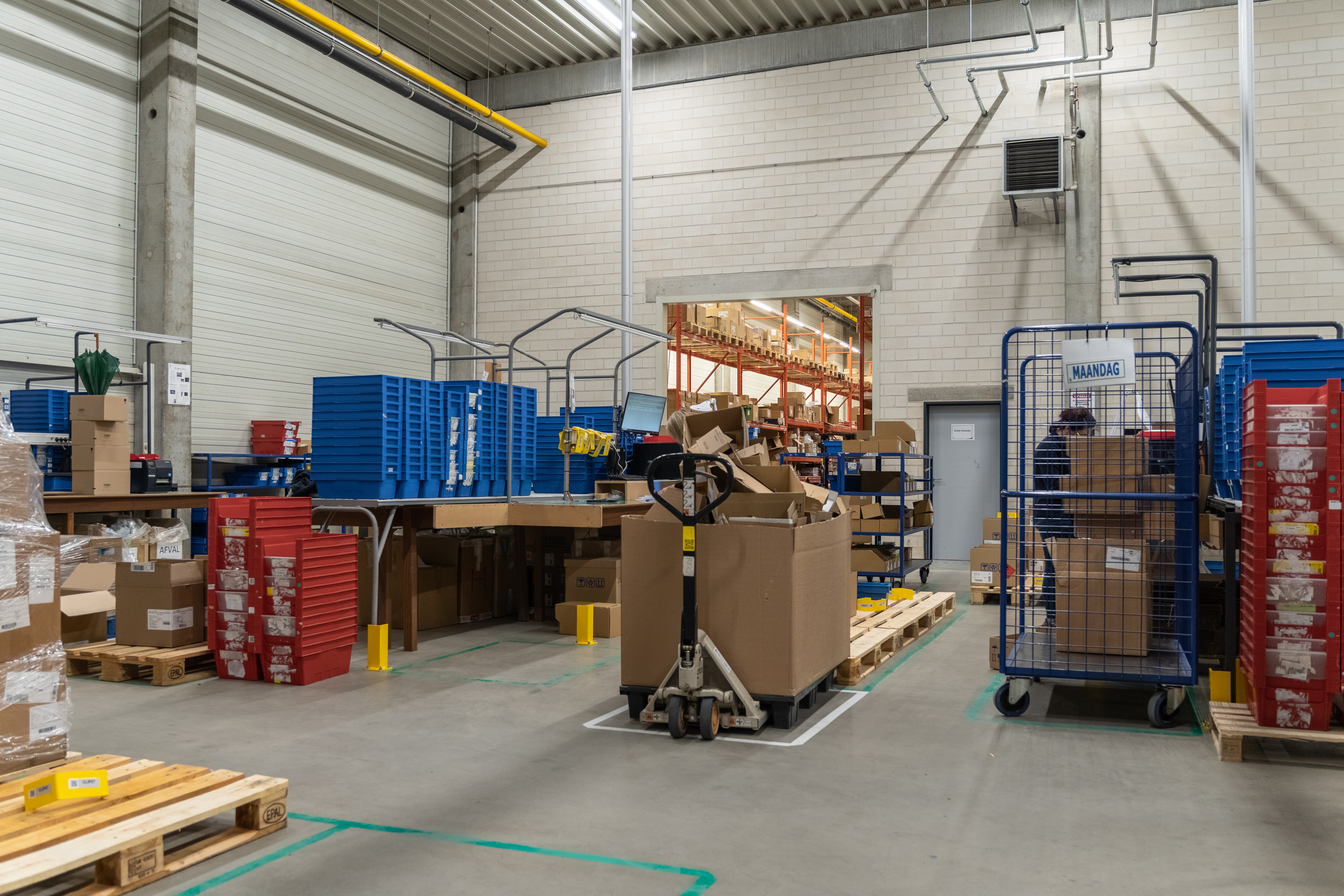 « Bonjour, je m'appelle Veerle et je travaille chez Febelco depuis 20 ans. Depuis le déménagement de Deurne à Wijnegem (2009), je suis à la réception. Je suis spécialiste des petits colis, c'est-à-dire les petites boîtes des fournisseurs, tandis que mes 10 collègues se chargent principalement des grandes palettes.»